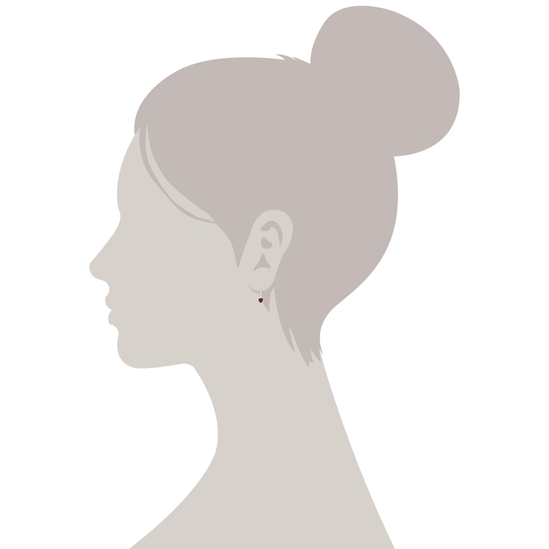 Une élégante paire de boucles d'oreilles pendantes, en argent sterling, ornée d'un grenat rouge en forme de cœur au centre. Ces boucles d'oreilles sont munies d'un crochet et conviennent uniquement aux oreilles percées.