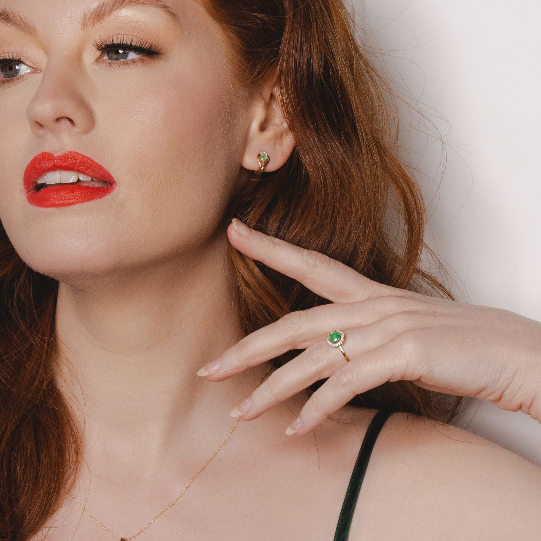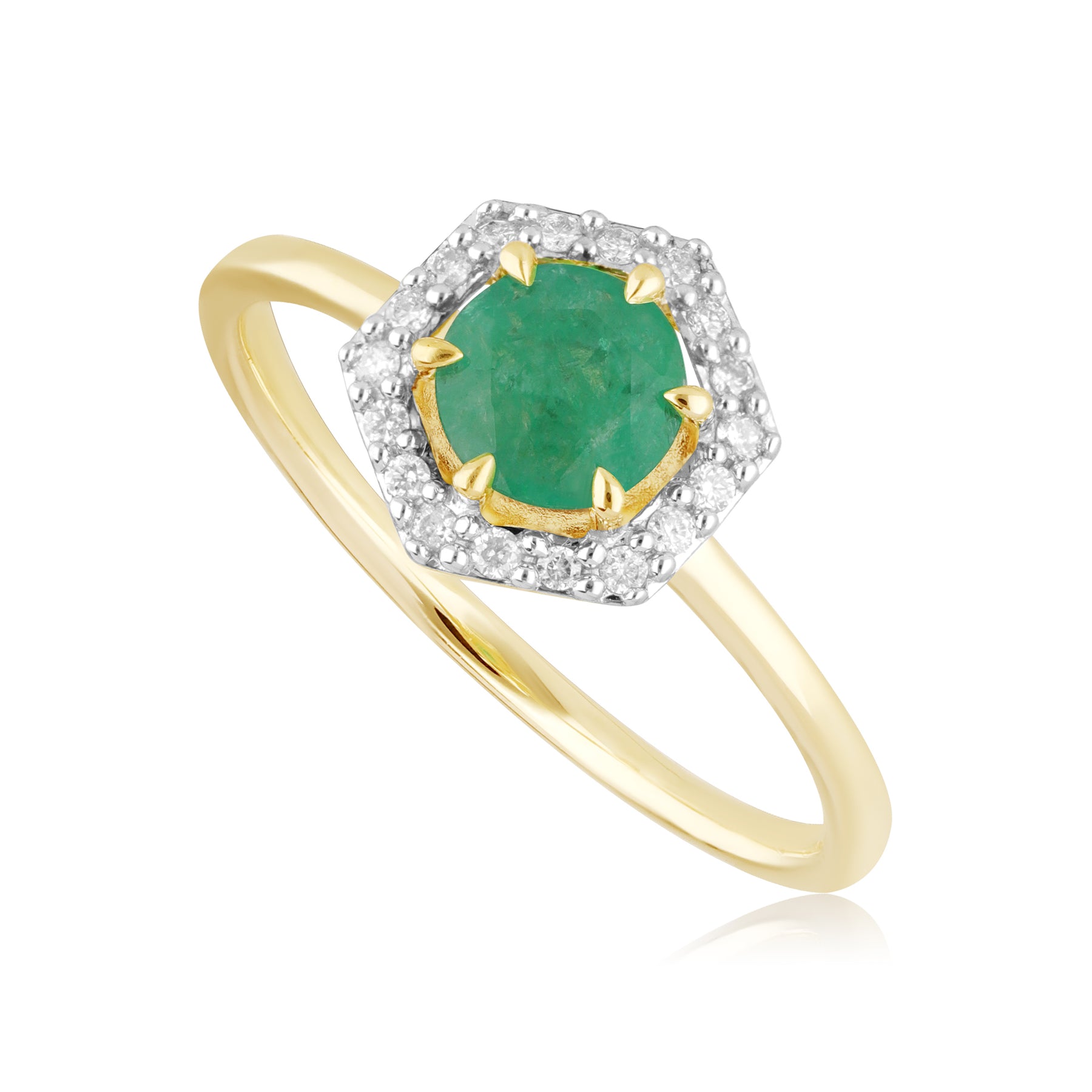 This elegant yellow gold Emerald and diamond halo engagement ring will instantly add a touch of sparkle and colour to your fingers. Will you be getting down on one knee? This stunning 9ct gold ring is perfect for asking big questions.