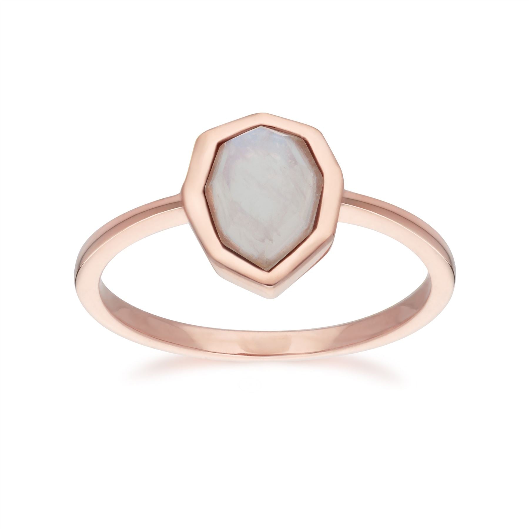 A beautiful boho rose gold plated sterling silver ring with an irregular cut iridescent rainbow moonstone gemstone. Curate your own hand stack with this bold and contemporary gemstone ring.