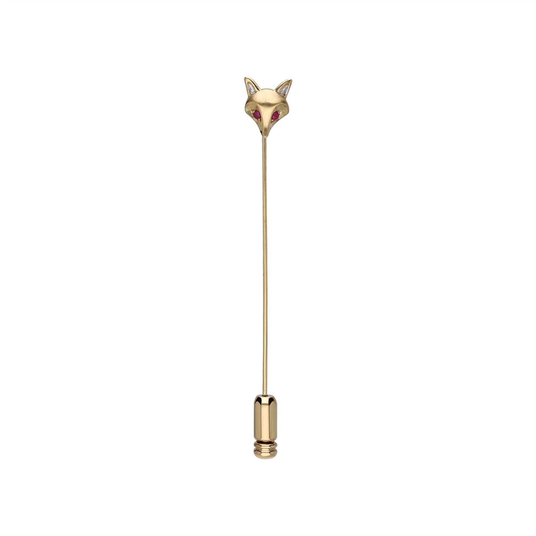 Laissez-vous inspirer par la nature avec cette superbe et élégante épinglette en forme de renard en or jaune 9 carats avec de magnifiques détails brossés. Cette épingle en forme de renard ludique est livrée avec des yeux de rubis passionnés et une barre et un bouchon en laiton à fixer.