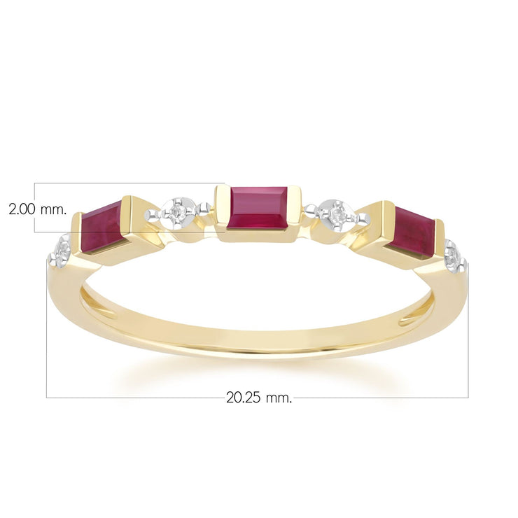 Une magnifique bague d'éternité classique en rubis baguette et diamant en or jaune 9 carats.