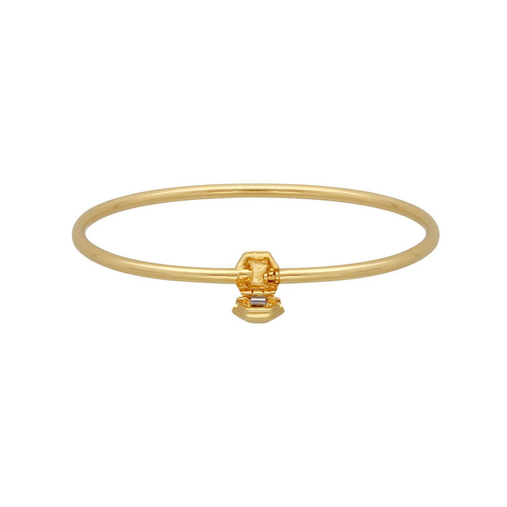 A chic and structured gold plated sterling silver charm bangle in a small size to be worn your way. This bangle features a hexagon clasp and a flexible design for easy everyday wear.